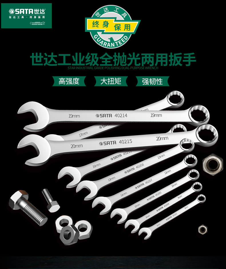 世达sata梅花双开口两用扳手15mm板子套装组合