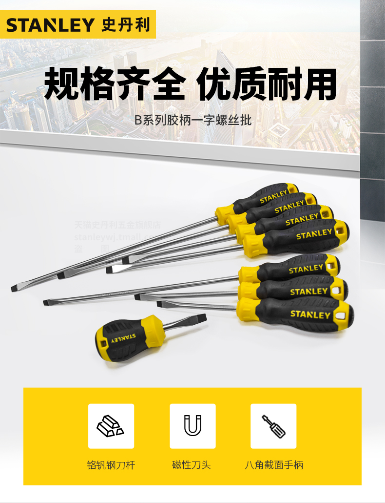 史丹利铬钒钢强力型一字螺丝刀手工工具