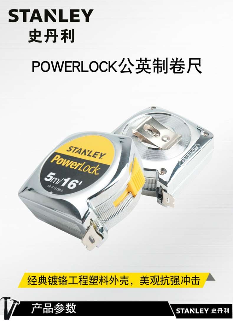 史丹利3M/10" 5M/16'' POWERLOCK 公英制卷尺家用尺子