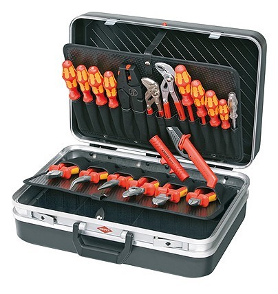 箱体底层高度58mm,可分隔摆放工具,有专门摆放文件的袋子,每一层都可以通过锁扣固定,方便演示 箱体采用耐磨的ABS材料制作,外围中央采用双层铝框加固,采用金属合页、扣锁、符合人体工程原理的手柄 最大载重为20kg 每一层工具固定插袋都采用Con-PearlTM材料 包括20件工具,绝缘部分的工具经VDE测试,符合DIN EN/IEC 609001000V 标准 工具箱内尺寸为(高×宽×深):460×170×310 mm 工具箱外尺寸为(高×宽×深):480×175×370 mm |