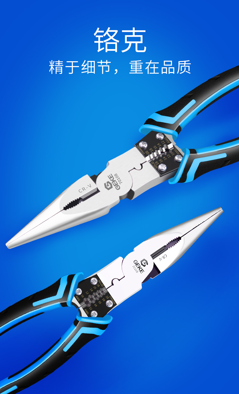 铬克多功能电工专用工业级尖嘴钳剥线钳8寸