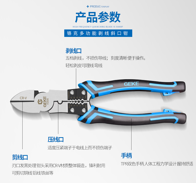 铬克多功能斜嘴钳8寸剪钢丝强力水口钳